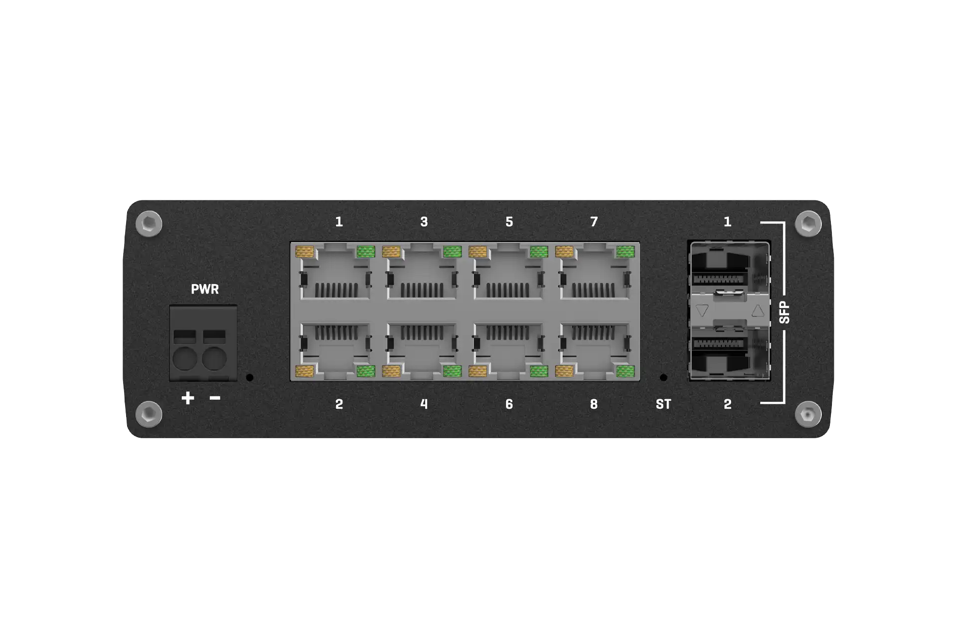 TSW212 is an L2 managed Ethernet switch with additional L3 features, like DHCPv6 client support and static IPv6 routing. This switch supports protocols, including EtherNet/IP, PROFINET, and MRP, and has 8 Gigabit Ethernet ports and 2 SFP ports to ensure robust long-range fibre optic communication.
